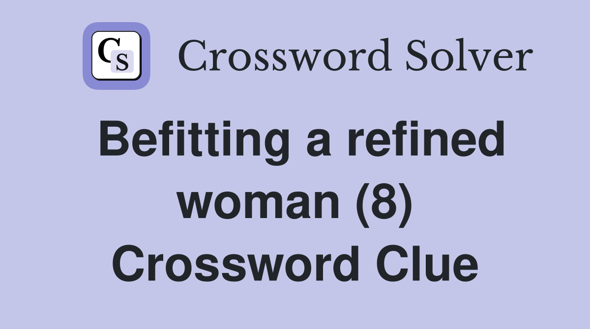 Befitting a refined woman (8) Crossword Clue Answers Crossword Solver