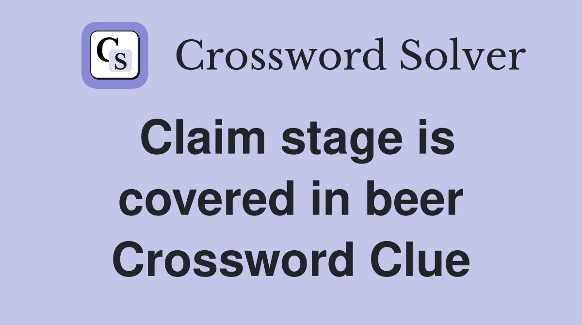 Claim stage is covered in beer Crossword Clue Answers Crossword Solver