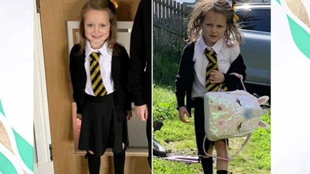 Mum s hilarious snaps show daughter 5 before and after first day of