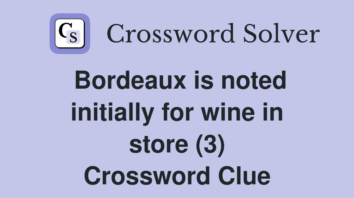 Bordeaux is noted initially for wine in store (3) Crossword Clue