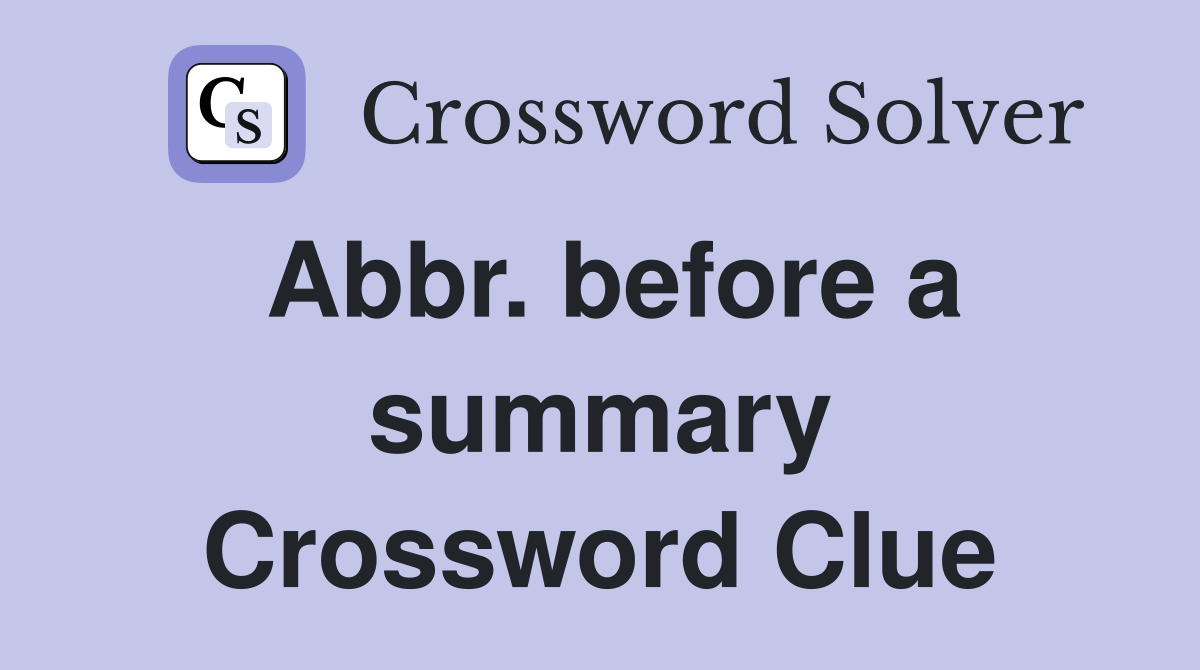 Abbr before a summary Crossword Clue Answers Crossword Solver