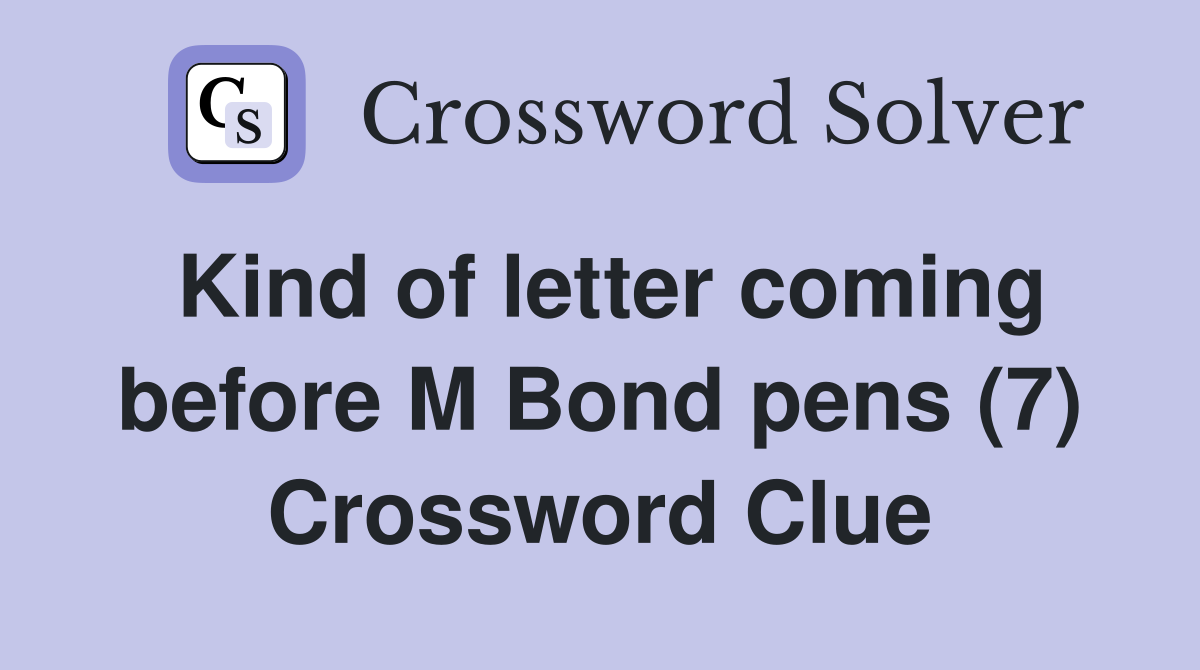 Kind of letter coming before M Bond pens (7) Crossword Clue Answers