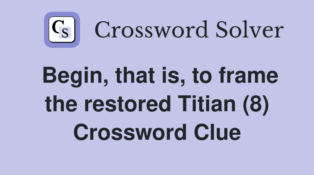 Begin that is to frame the restored Titian (8) Crossword Clue