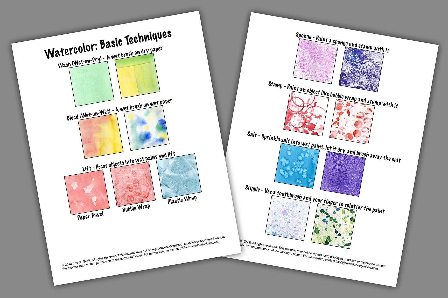 10 Watercolor Paint Techniques Art Worksheet Activity Lesson Guide