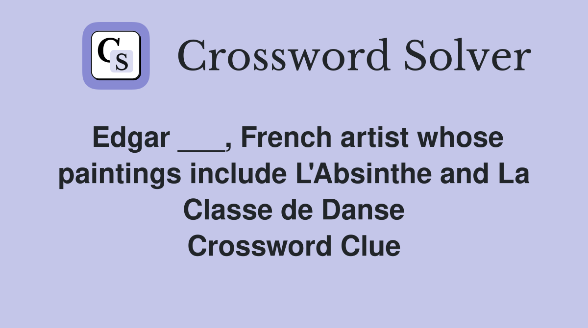 Edgar French artist whose paintings include L #39 Absinthe and La