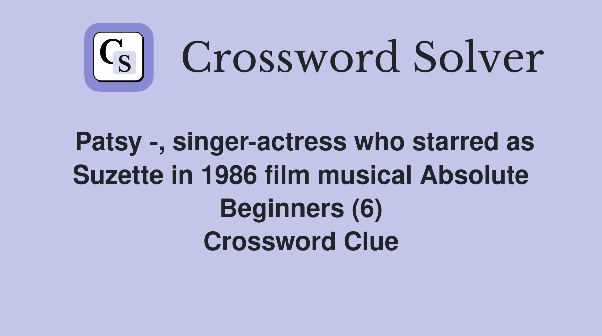 Patsy singer actress who starred as Suzette in 1986 film musical