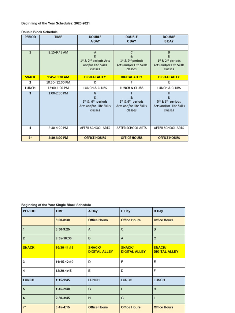 Beginning of The Year Student Schedules 2020 2021 PDF Months Of