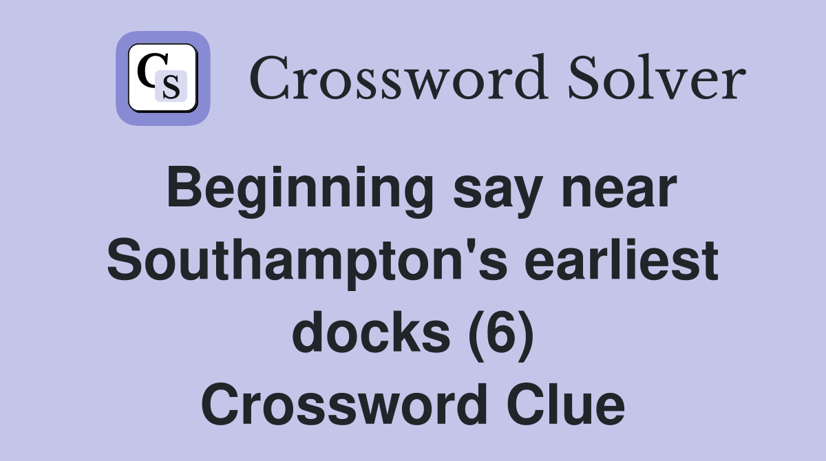 Beginning say near Southampton #39 s earliest docks (6) Crossword Clue