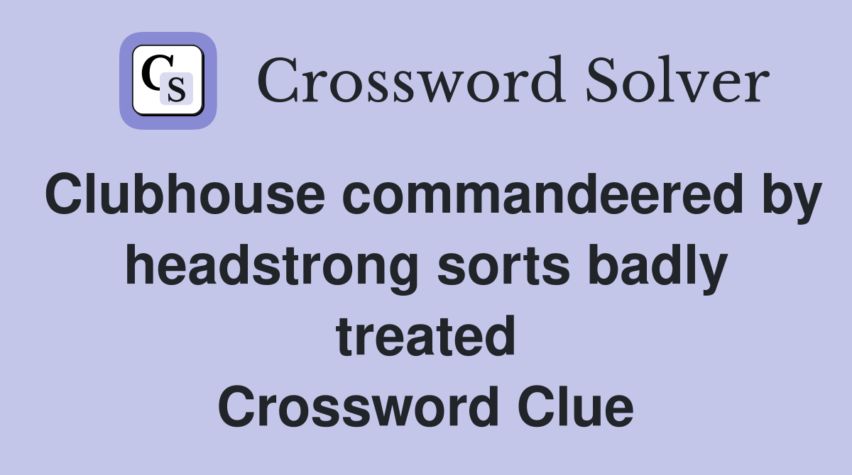 Clubhouse commandeered by headstrong sorts badly treated Crossword