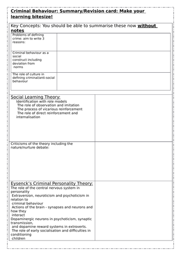 Template for Criminal behaviour theories and studies Teaching Resources