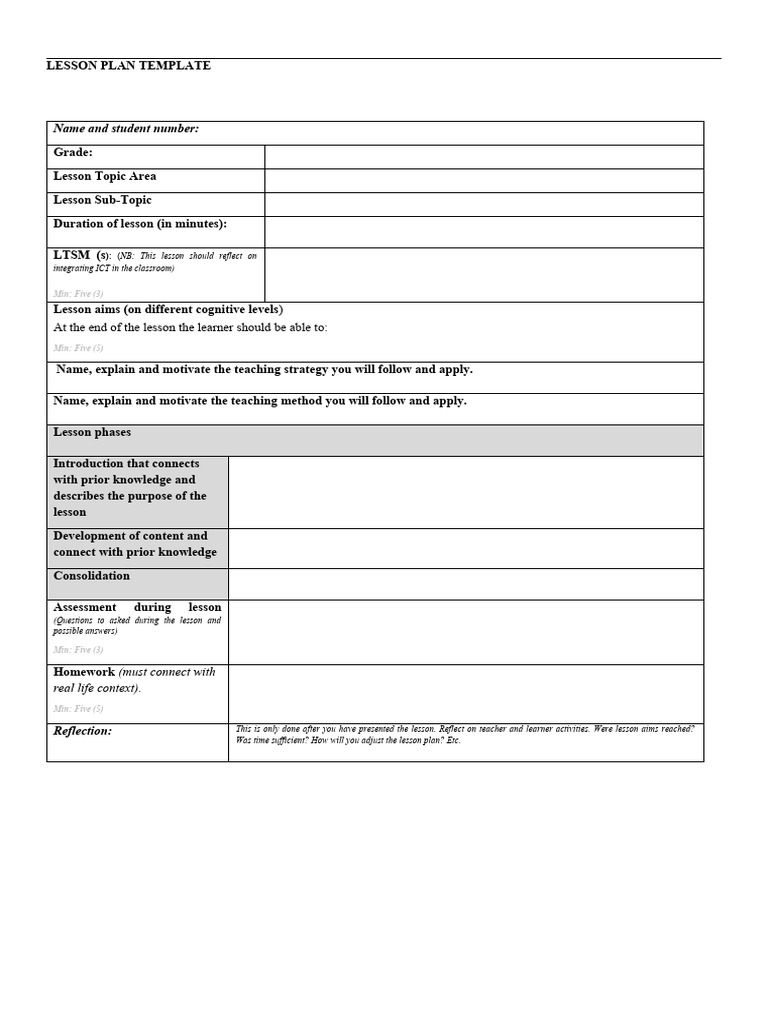 Lesson Plan Template for Teacher Education