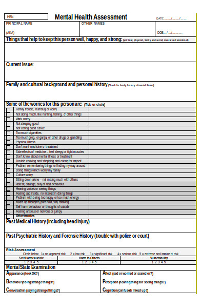 FREE 8 Sample Mental Health Assessment Forms in PDF MS Word