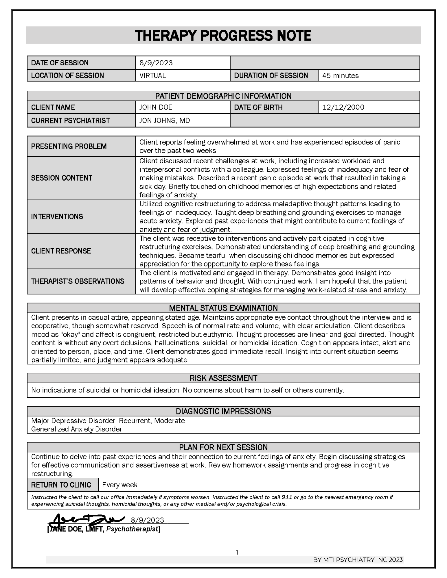 Progress Notes For Psychotherapy Template Example Free PDF Download