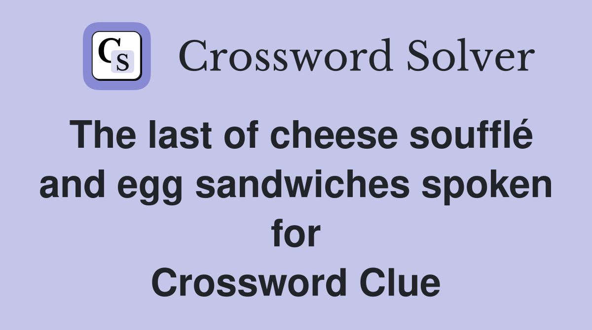 The last of cheese soufflé and egg sandwiches spoken for Crossword