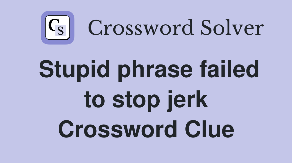 Stupid phrase failed to stop jerk Crossword Clue Answers Crossword