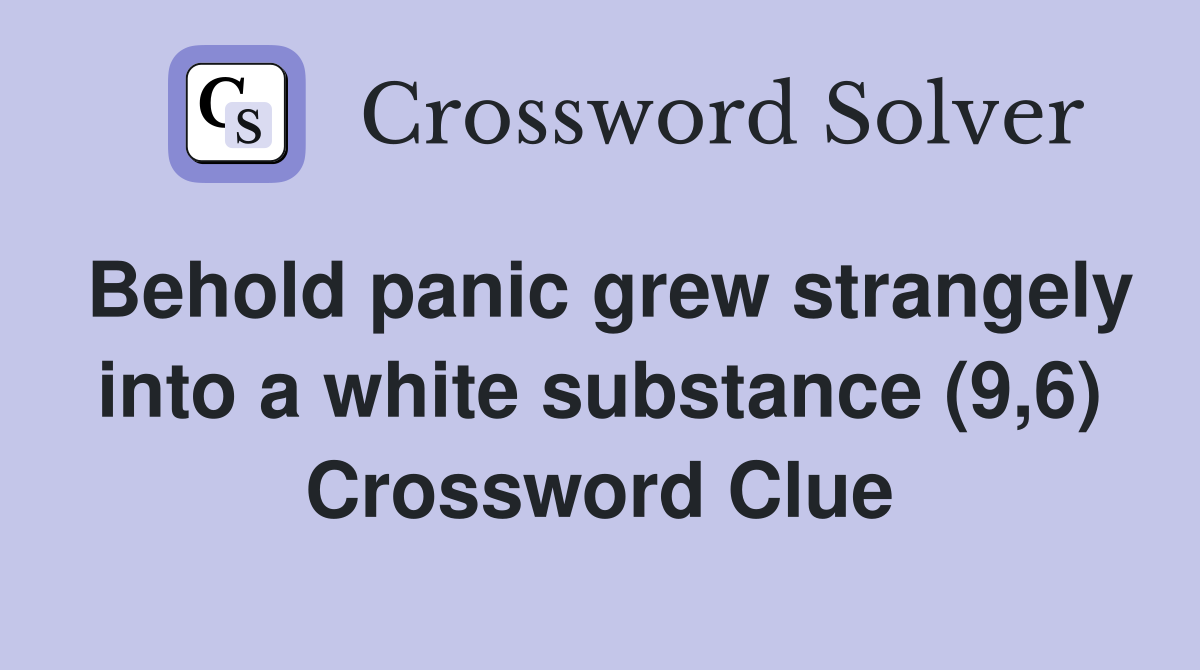 Behold panic grew strangely into a white substance (9 6) Crossword