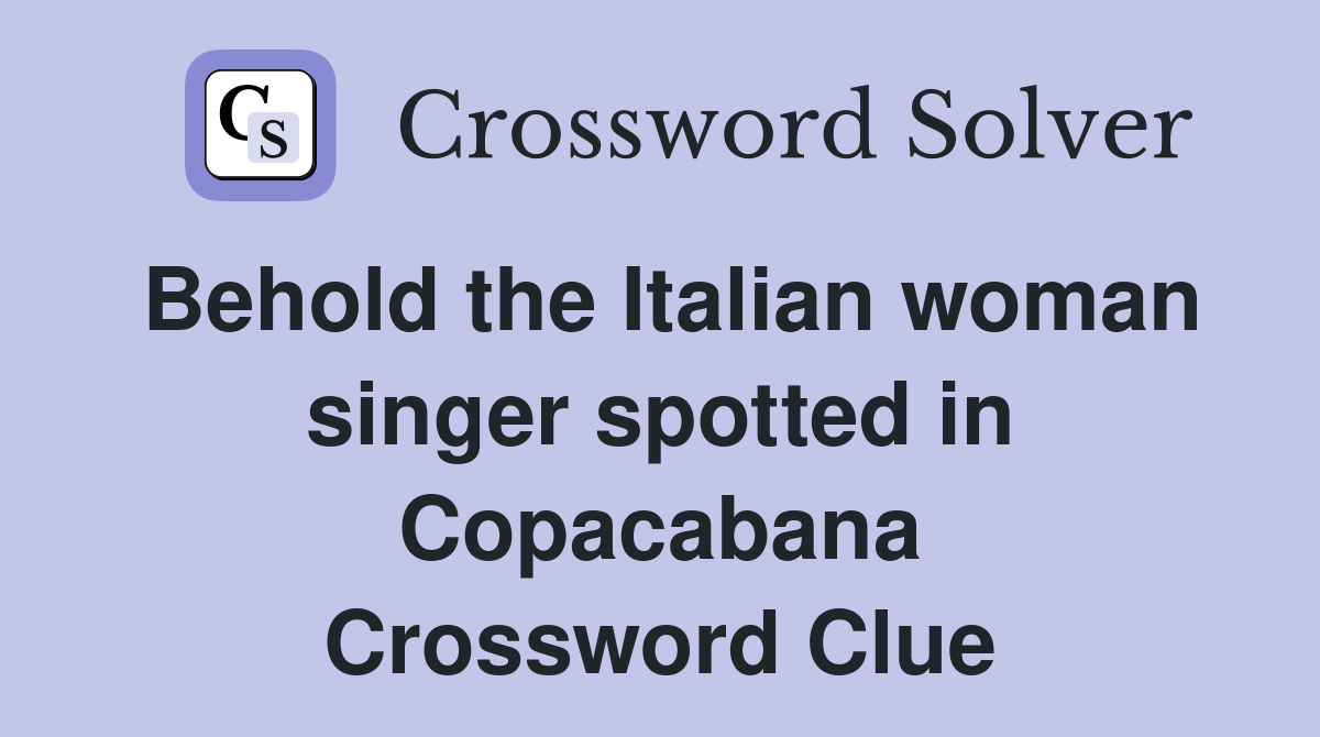 Behold the Italian woman singer spotted in Copacabana Crossword Clue
