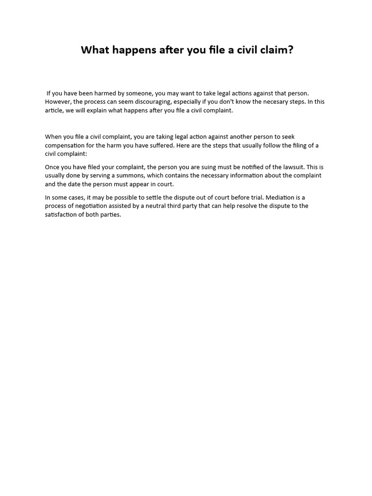 What Happens After You File A Civil Claim? PDF Politics Social