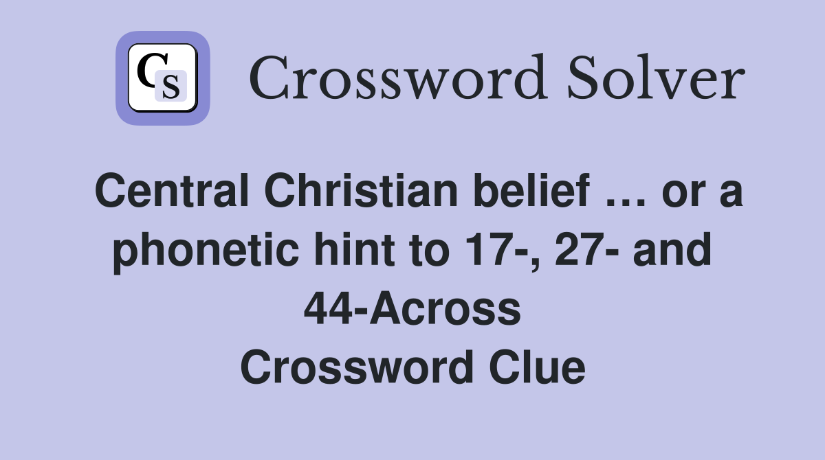 Central Christian belief or a phonetic hint to 17 27 and 44 Across