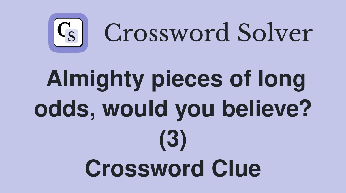 Almighty pieces of long odds would you believe? (3) Crossword Clue