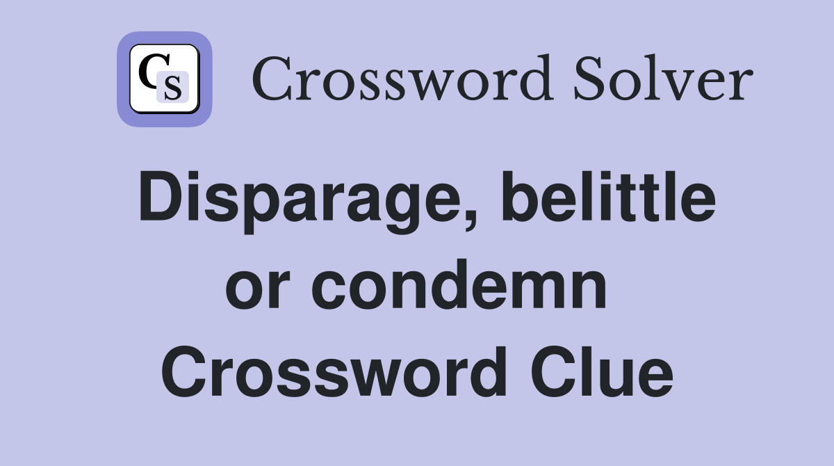 Disparage belittle or condemn Crossword Clue Answers Crossword Solver