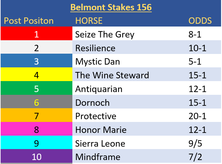 Belmont Stakes at Saratoga Entries Post Draw and Odds: Mystik Dan