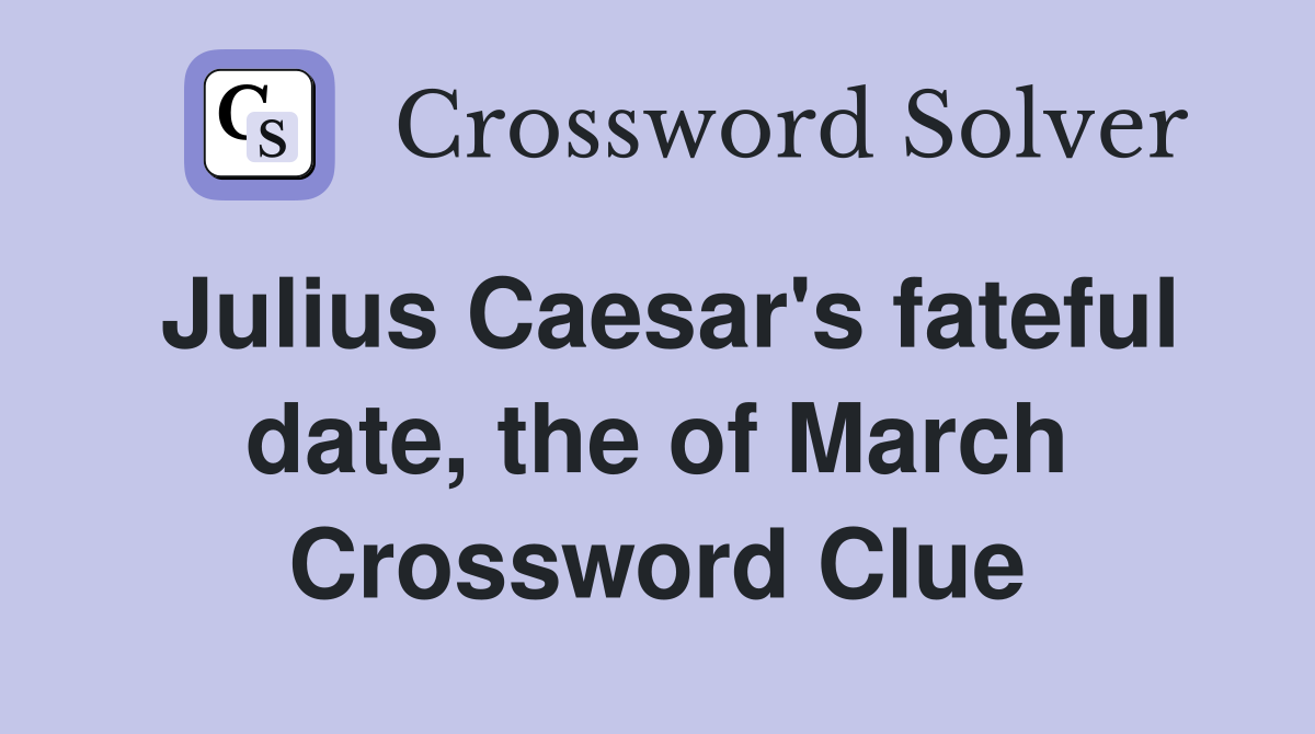 Julius Caesar #39 s fateful date the of March Crossword Clue Answers