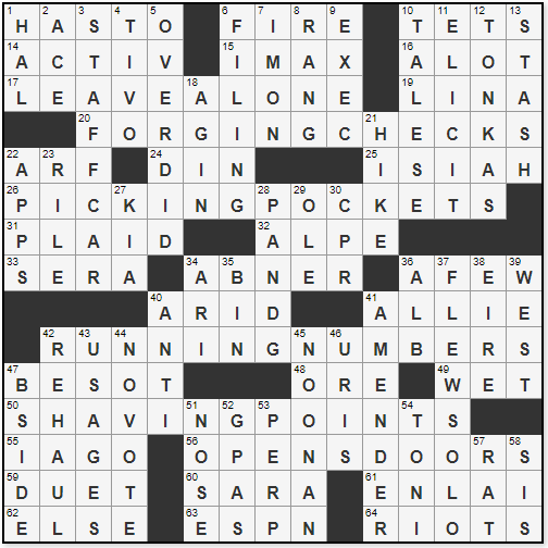 L A Times Crossword Corner: Thursday August 2nd 2018 Ed Sessa