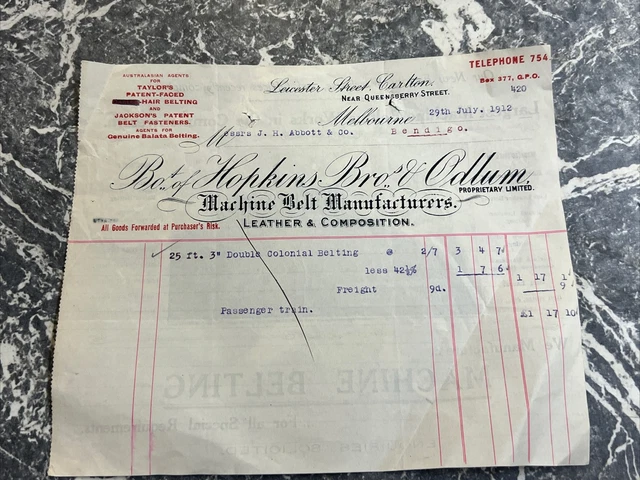 VINTAGE LETTER HOPKINS Odlum Machine Belt Makers Leicester St Carlton
