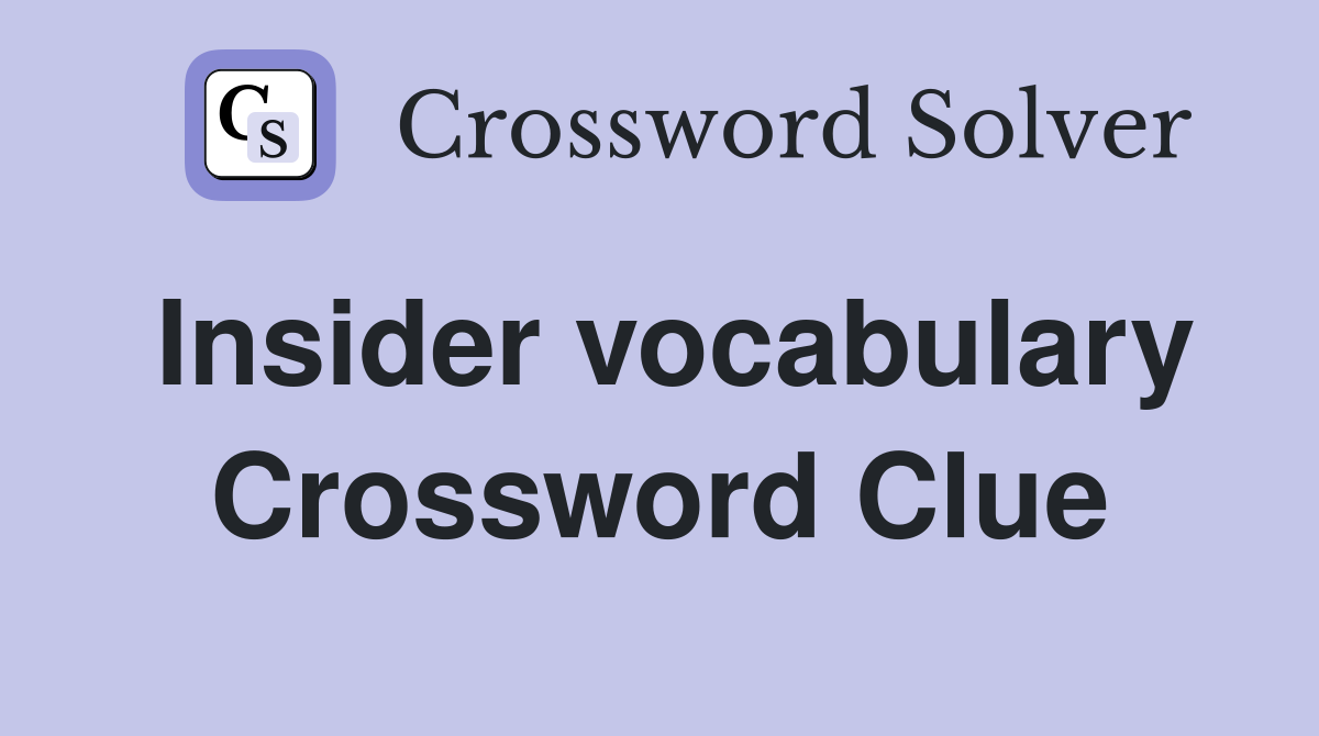 Insider vocabulary Crossword Clue Answers Crossword Solver