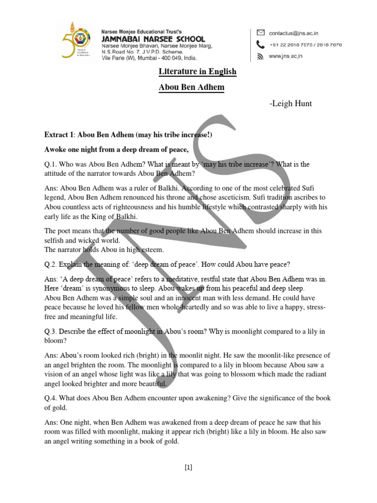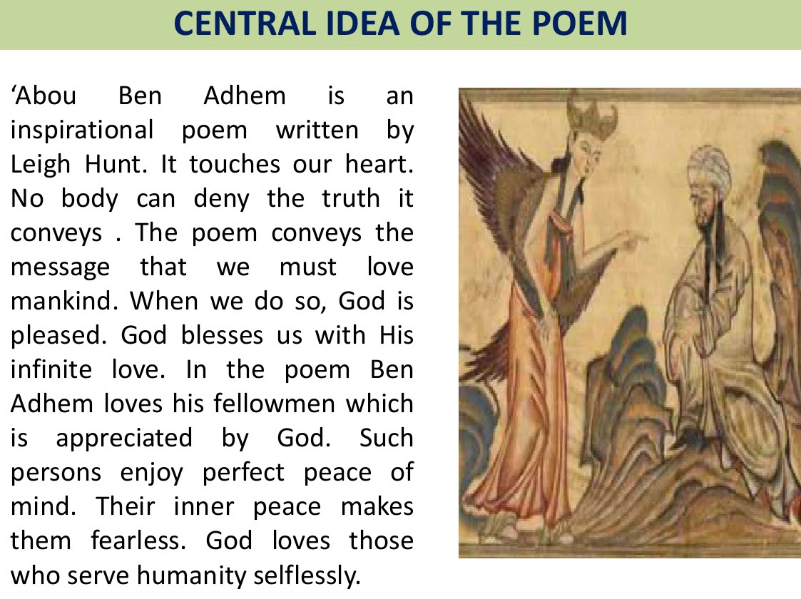 7th Standard English Abou Ben Adhem Leigh Hunt Poem Notes