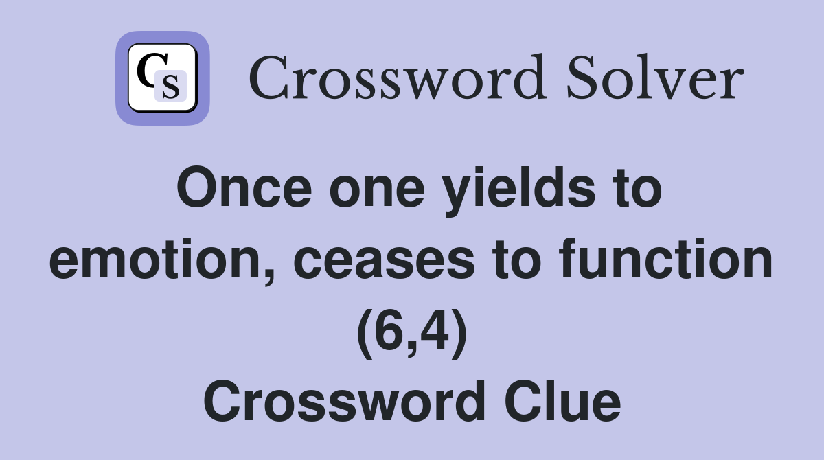 Once one yields to emotion ceases to function (6 4) Crossword Clue