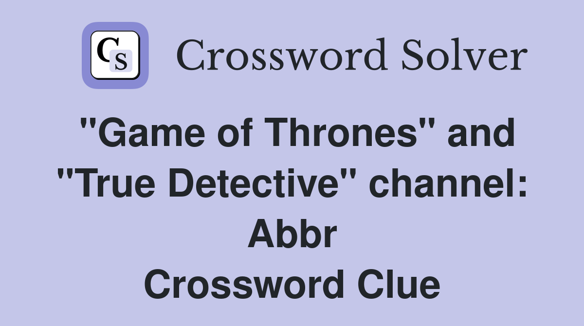 quot Game of Thrones quot and quot True Detective quot channel: Abbr Crossword Clue