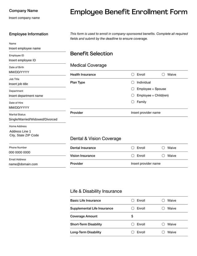 Employee Benefits Enrollment Form Template
