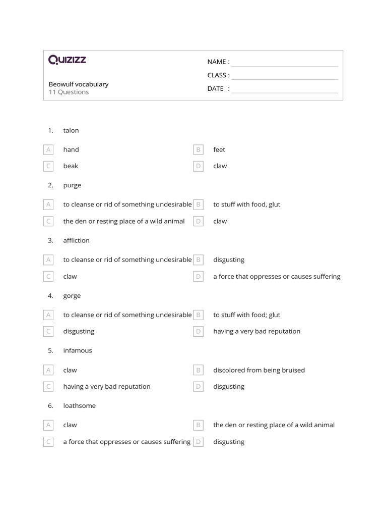 Here are some of the images for Beowulf Vocabulary Worksheet Answers that we found in our website database.