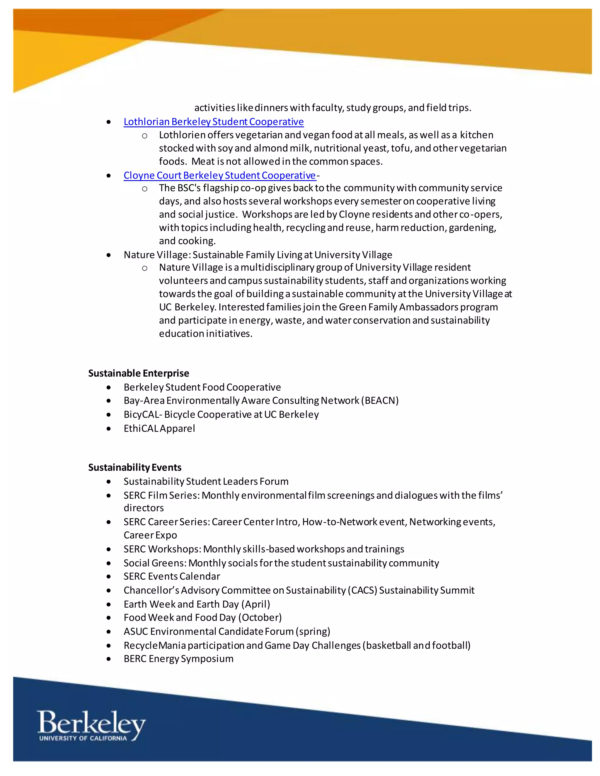 UC Berkeley Sustainability Co Curricular Education Summary PDF