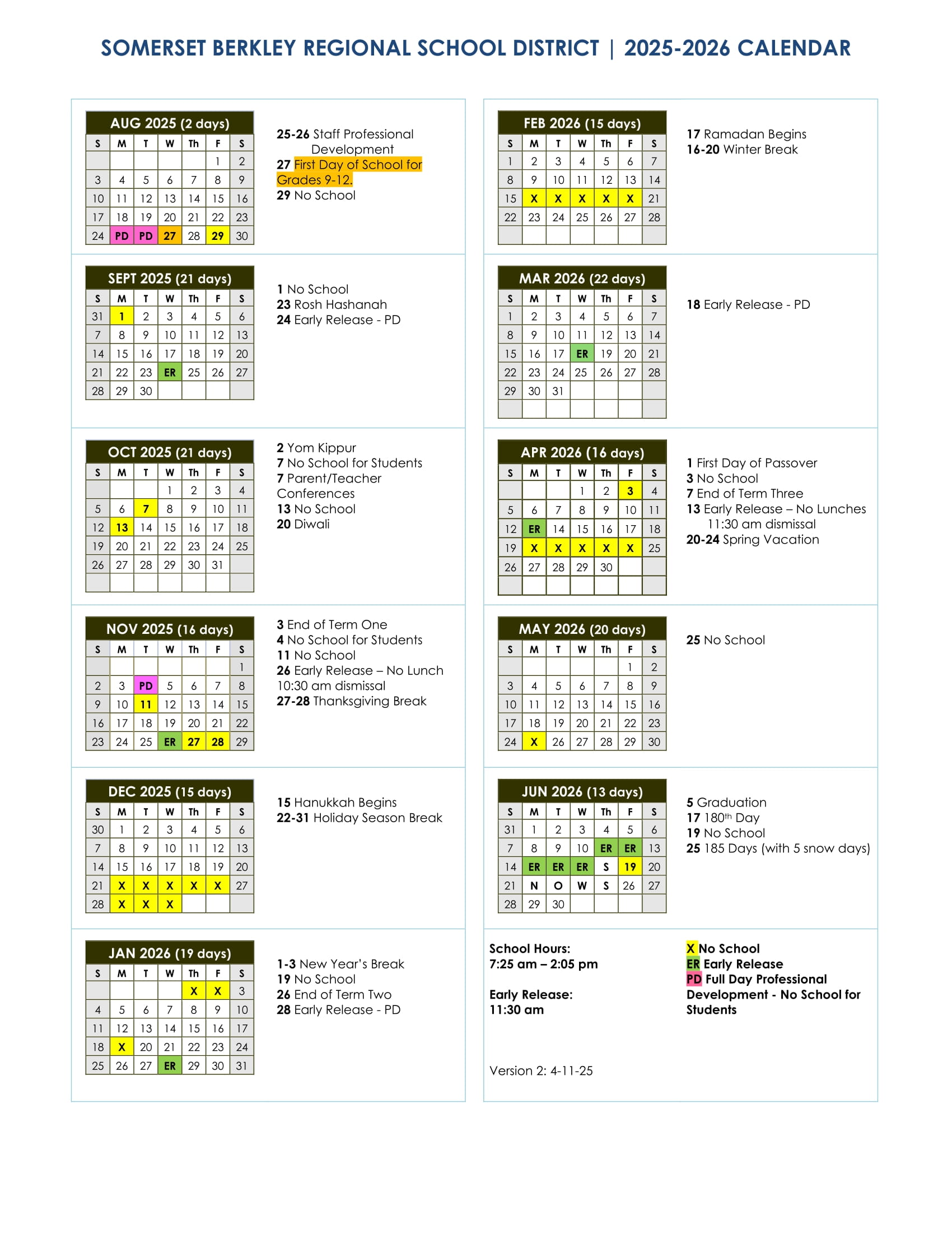 Somerset Berkley Regional School District calendar 25 26 Revised PDF