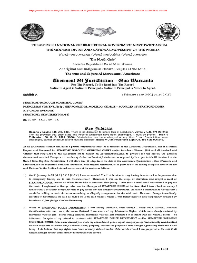 Averment of Jurisdiction Quo Warranto STRATFORD BOROUGH MUNICIPAL
