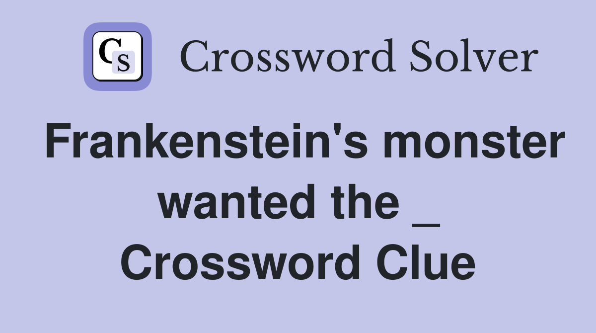 Frankenstein #39 s monster wanted the Crossword Clue Answers