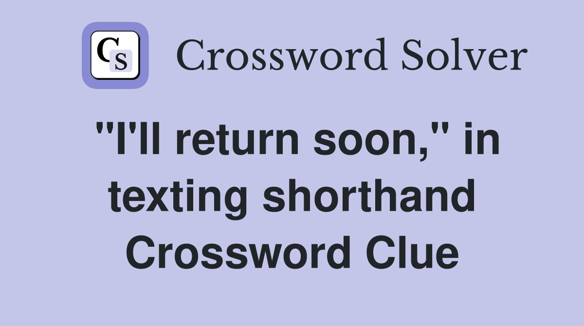quot I #39 ll return soon quot in texting shorthand Crossword Clue Answers