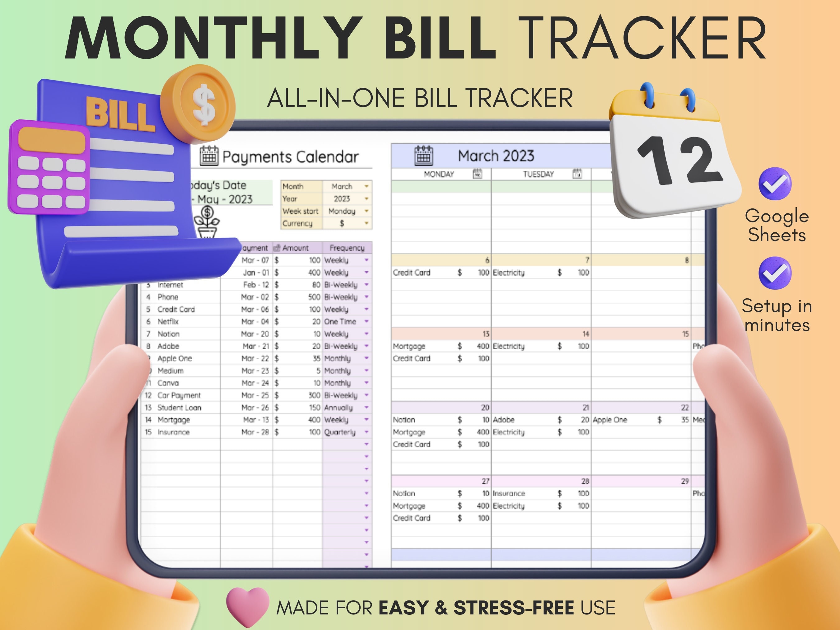 Bill Tracker Spreadsheet Google Sheets Bill Calendar Monthly Etsy