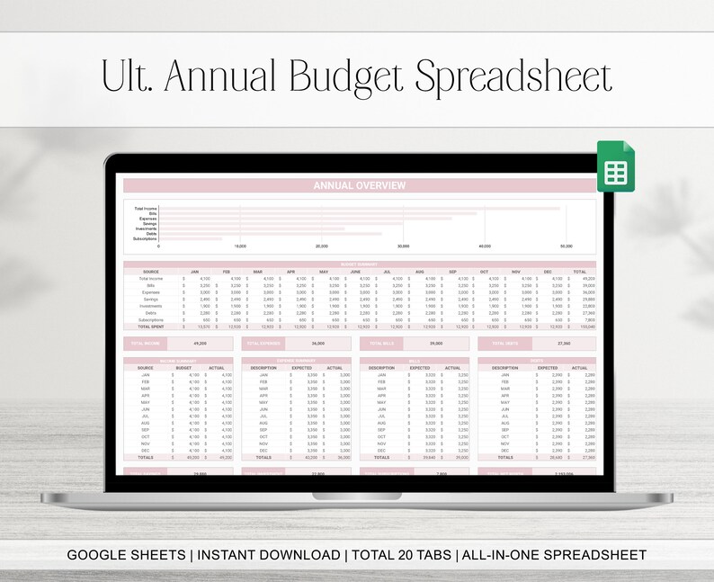 Ultimate Annual Budget Google Sheets Spreadsheet Yearly Etsy