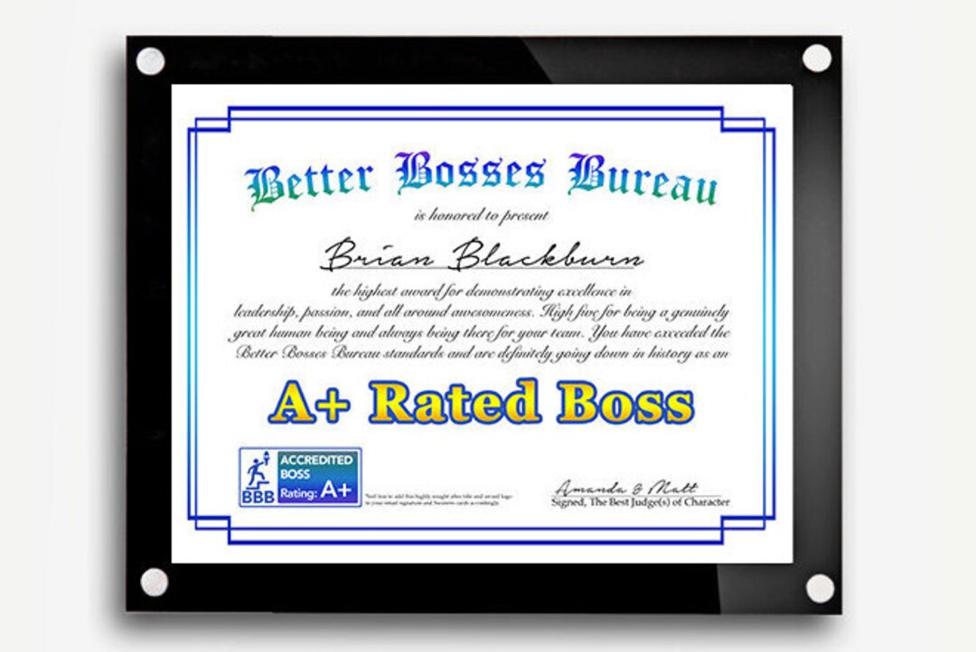 Personalized Best Boss Ever Award Certificate Unique Gifts for Boss