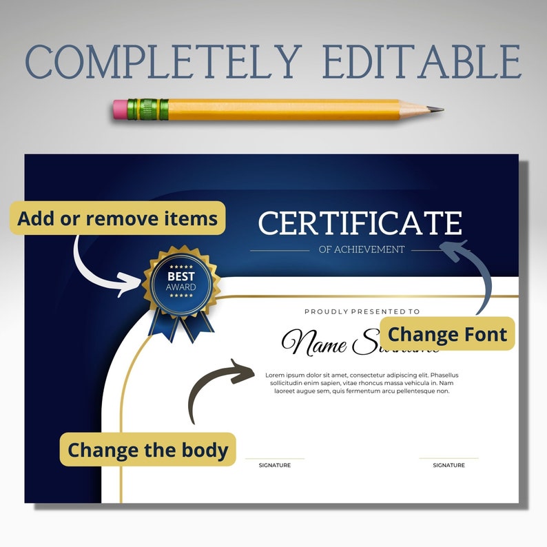 Blue Certificate of Achievement Template: Editable Award (digital