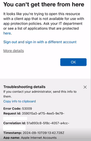MAM Conditional Access blocking users to sync Outlook Calendar into the