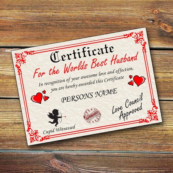 Worlds Best Husband Certificate Etsy