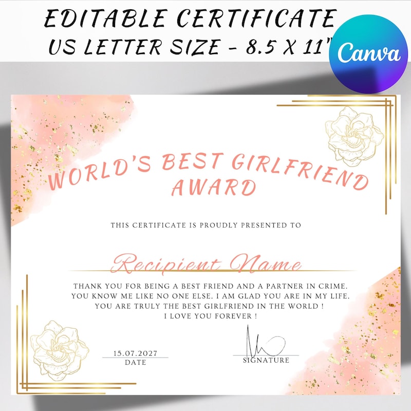 Surprise your girlfriend using these 16 best girlfriend certificate in