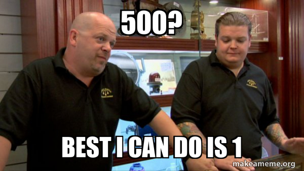 500? best i can do is 1 Pawn Stars Meme Generator