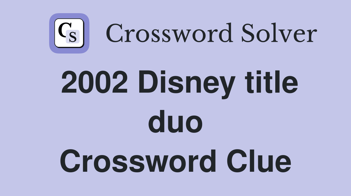 2002 Disney title duo Crossword Clue Answers Crossword Solver