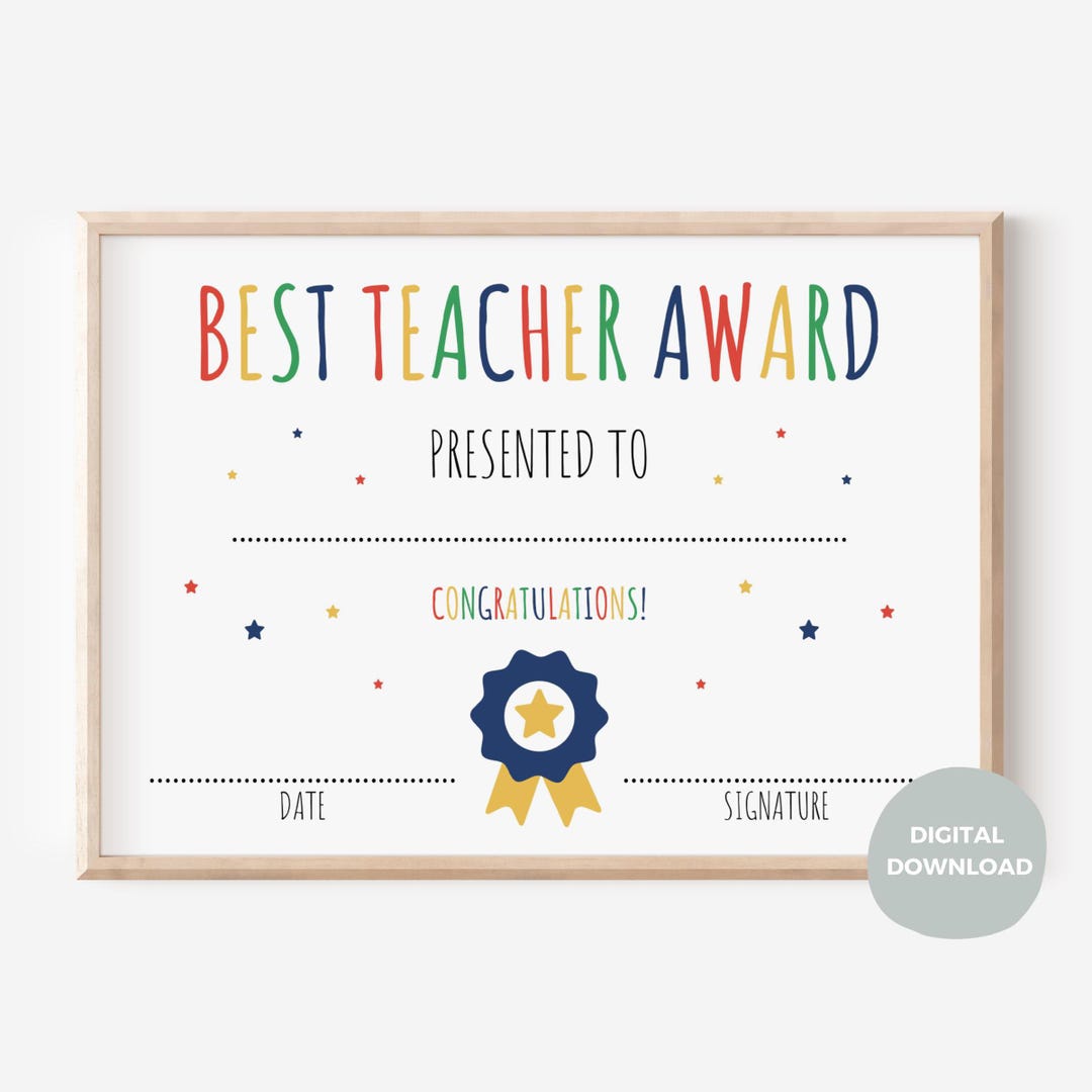 Best Teacher Printable Diploma Teacher Appreciation Award Certificate